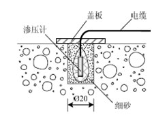 (2)在壩體施工縫埋設(shè)滲壓計:在澆筑下一層混凝土時,在埋設(shè)位置的層面預(yù)留一個深30cm、直徑20cm的孔;在孔內(nèi)鋪一層細砂,將滲壓計放在砂墊層上;用細砂將滲壓計埋好,孔口放一蓋板,再澆筑混凝土。