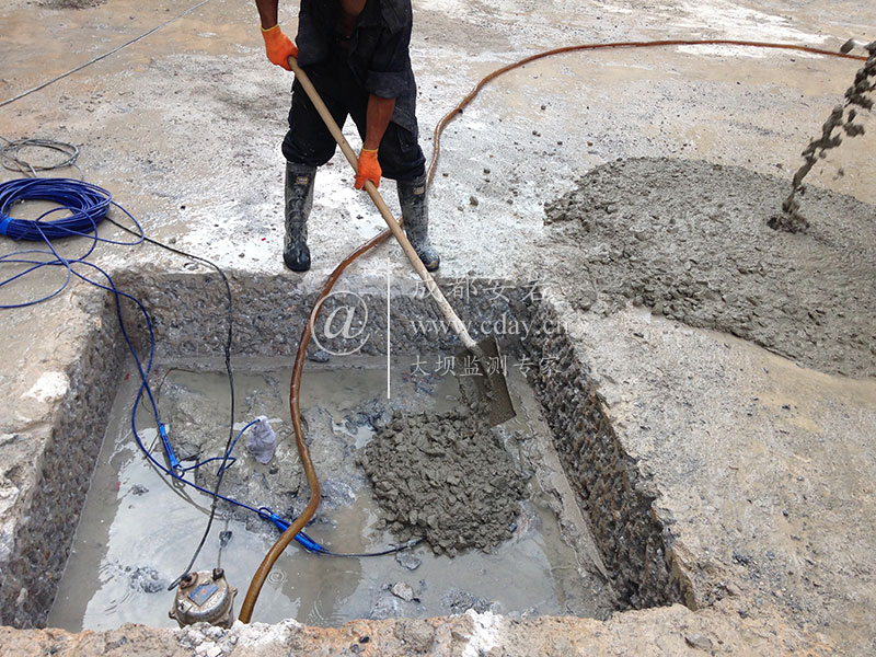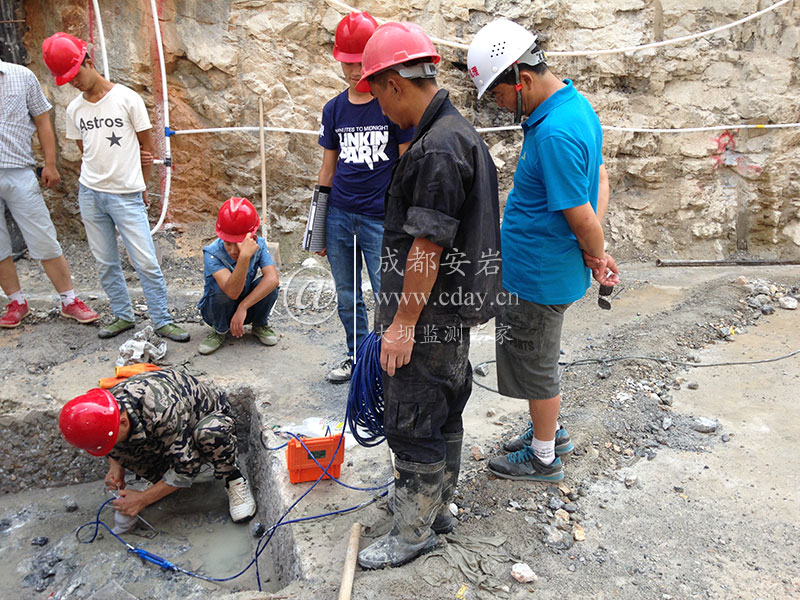 2015年7月,安巖物聯(lián)為甘肅隴南成縣磨壩峽水庫(kù)工程提供大壩安全監(jiān)測(cè)成套服務(wù)。圖為安裝進(jìn)口滲壓計(jì)現(xiàn)場(chǎng)圖片。